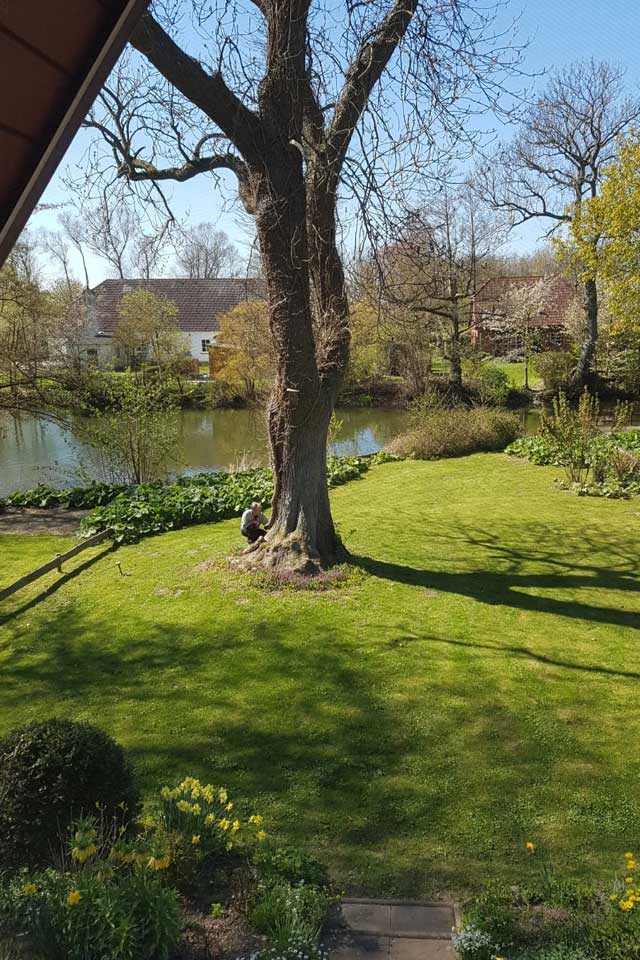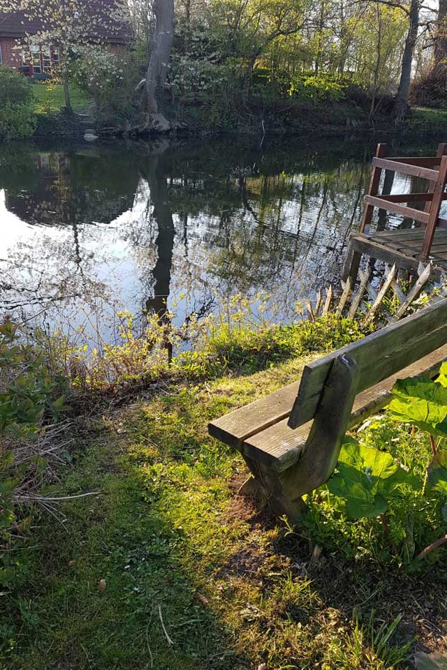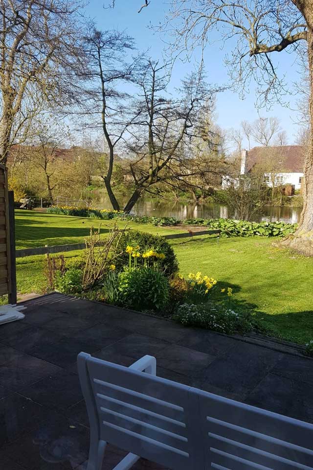 Der großzügige Garten hinter dem Haus lädt zum Entspannen und Genießen ein. Er ist nur zu Ihrem eigenen Gebrauch. Kinder sind in unserem Haus natürlich herzlich willkommen, jedoch empfehlen wir ein Mindestalter von sechs Jahren wegen der Wendeltreppe und den nicht eingezäunten Bereich zum Schloßteich.